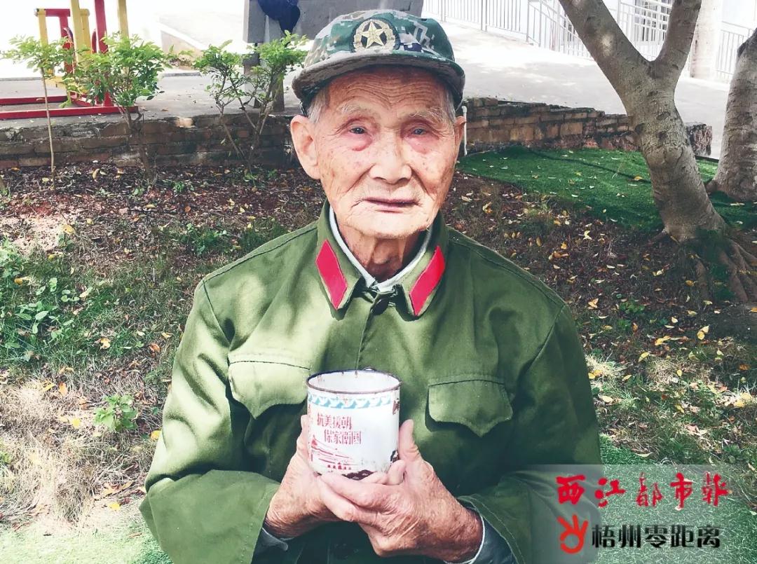 一個銹跡斑斑的搪瓷杯,因為一段特殊的歷史,被96歲的陳彩新一直珍藏至今。“這是我參加抗美援朝戰爭后所獲得的紀念品,它是那段崢嶸歲月的見證。”10月19日,在岑溪市光榮院里,陳彩新深情地撫摸著這個“老物件”,回憶起他1952年參加抗美援朝出國作戰的經歷。
