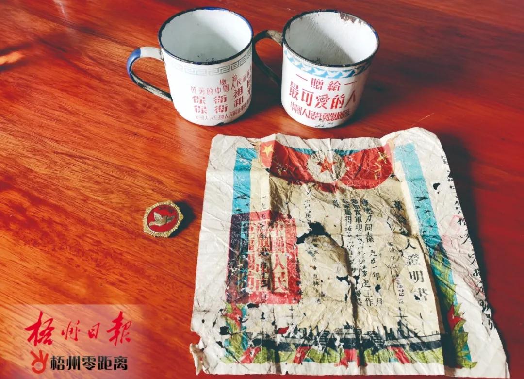 一份“革命軍人證明書”,一個和平鴿勛章及兩個搪瓷杯,凝聚著覃德才參加抗美援朝的回憶。記者 吳艷虹 攝