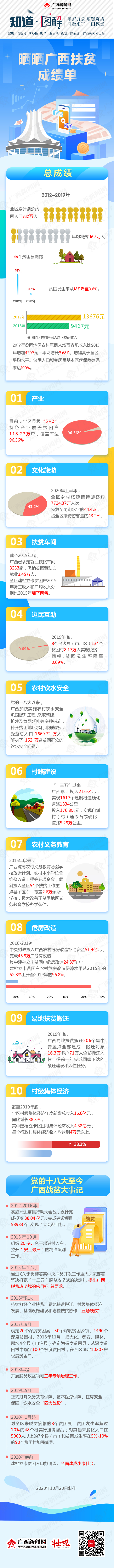 2020年10月17日是第7個國家扶貧日,也是第28個國際消除貧困日。作為全國脫貧攻堅戰主戰場之一,廣西深入貫徹落實習近平新時代中國特色社會主義思想,按照黨中央、國務院部署要求,把脫貧攻堅作為最大政治責任和第一民生工程來抓。全區上下經過不懈努力,即將完成決戰決勝脫貧攻堅任務,全面建成小康社會。 10月10日至10月31日,我區正式對最后未脫貧的8個貧困縣、660個貧困村和24萬貧困人口開展脫貧摘帽認定工作。啃下這批“極貧深貧”最難啃的“硬骨頭”后,標志著全區634萬建檔立卡貧困人口全部脫貧,壯鄉將與全國同步奔向全面小康美好新生活。戳圖了解廣西脫貧成績單↓