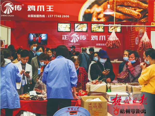 梧州零距離網(wǎng)-梧州日報訊(記者 謝韻)豆乳六堡茶凍、梧州特色紙包雞、螺螄風味餅……11月24日,在梧州毅德國際博覽城舉行的2020年首屆廣西特色食品博覽展銷會里,來自廣西14個地市共4000多種扶貧產(chǎn)品、特色產(chǎn)品和名優(yōu)特產(chǎn)集中亮相,讓不少前來參展的市民吃得盡興、買得過癮。
