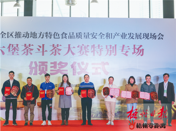 11月24日,在六堡茶斗茶大賽特別專場,主辦方為獲獎者頒獎。