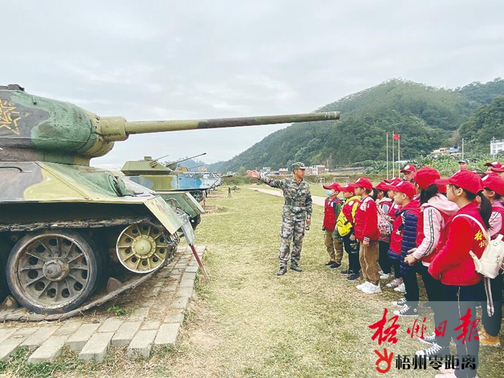 11月29日,在梧州軍博園內,岑溪市第一小學的小記者們正在聽教練介紹園區布設的坦克。