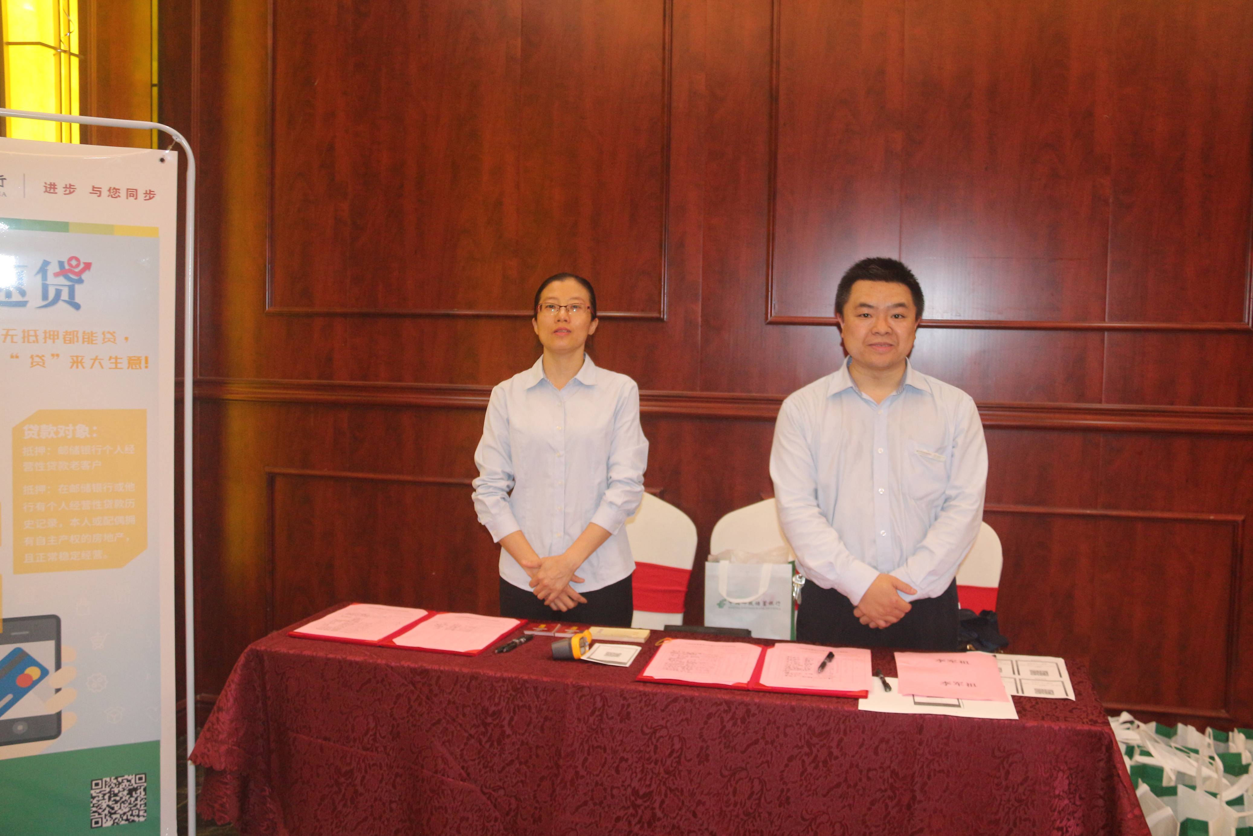 郵儲銀行梧州市分行員工做好會前接待工作。