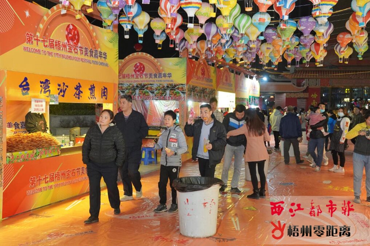 12月4日晚上,市民在三祺城圓盤廣場上品嘗美食。第十七屆梧州寶石節開幕的前一天,不少市民來到三祺城廣場,在“嶺南古郡 梧州味道”美食嘉年華逛街購物,提前感受梧州寶石節系列活動的熱鬧氛圍。 記者 陳凡 攝