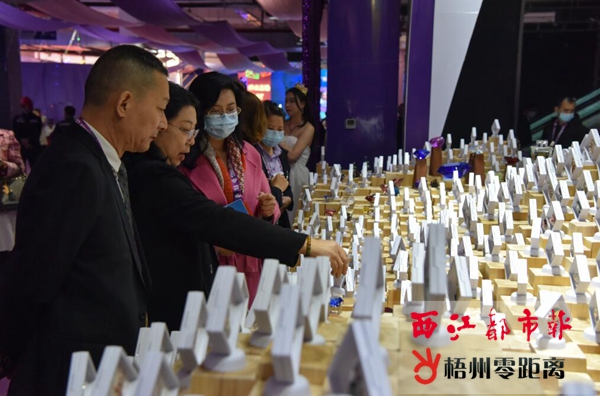 梧州零距離網-西江都市報訊(記者 姚藍婷)12月5日,第十七屆梧州寶石節珠寶展暨第三屆梧州工藝美術作品展在市三祺城一樓舉行。展會現場人頭攢動,市民和游客慕名而來,在展位上尋找自己中意的珠寶飾品和藝術品。