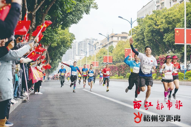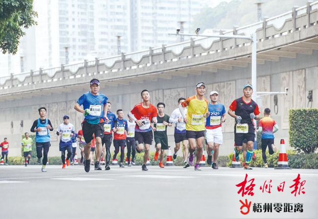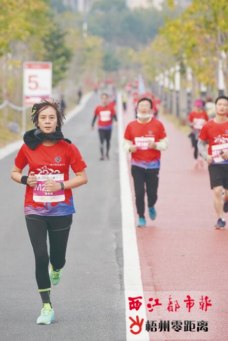 迷你馬拉松項目的“主戰場”設在風景秀麗的玫瑰湖公園。 記者 楊揚 攝 與迷你馬拉松輕松的氛圍不同,馬拉松和半程馬拉松的賽況尤為激烈。馬拉松項目的終點線設在梧州市公安局,作為梧州市首個全馬賽事,當天的賽事進程時刻牽動著在場觀眾的心。“跑過來了。加油!加油!”終點線周邊的觀眾用熱情的助威聲,為選手們的最后沖刺加油鼓勁。經過一番角逐,來自貴港市的選手馬水旺率先沖過終點,以2小時22分17秒奪得馬拉松項目大眾組男子冠軍。 “跑完之后感覺狀態非常好。”沖過終點線后,馬水旺高興地說道,這次賽事的彎道、坡道都比較多,給比賽增加了一定難度。但賽事組委會的組織非常有序,沿途標識明確、補給高效充足,這讓他不僅能順利完成賽事,而且還刷新了自己在2019年廣州馬拉松賽事的個人最好紀錄。 此外,充滿梧州特色的賽道也是比賽中的亮點。西江沿岸的美景,玫瑰湖公園、龍母廟牌坊等城市地標,給選手們留下了深刻的印象。“賽道沿線風景優美、空氣清新,為整個賽事活動增色不少。”今年剛剛入警的廣西百色市公安局民警明定邦獲得了馬拉松項目警察組男子冠軍。他說,這是自己入警以來第一次參加馬拉松比賽,此前倍感壓力,賽道沿線的靚麗風光成為最好的“減壓劑”,讓自己充滿動力。