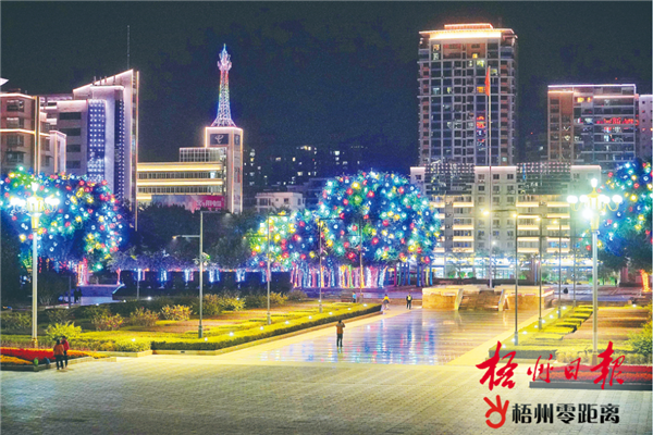 眼下,市政廣場(chǎng)夜景燈光布置逐步完善,為城市夜景增添了一道亮麗的風(fēng)景線。 梧州日?qǐng)?bào)記者 陳凡 攝
