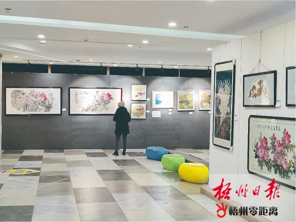 1月13日,“疊彩飛花落誰家”第十二屆梧州市美術書法名家走向藝術市場作品展在錦泰城二樓開幕,現場展出我市30名書畫藝術家的80幅作品,作品形式包括水彩畫、油畫、丙烯畫、書法作品等,展出持續至2月22日。梧州日報記者 陳凡 攝