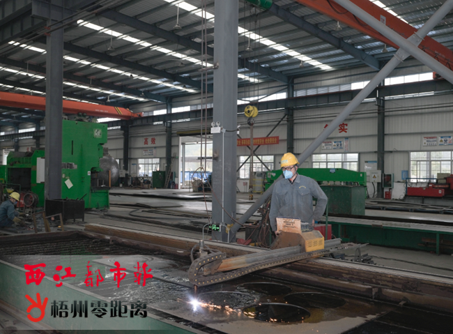 1月19日,技術人員正在博世科蒼梧環保設備生產基地內切割零部件。 該生產基地位于旺甫工業小鎮合水工業片區,據悉,公司廠房及其他配套設施自去年9月完成建設后馬上投入生產,預計達產后年產值約2億元,年產近300套污水處理設備和1.5萬噸環保新材料。當今正值歲末年初,該公司加快生產速度,爭創佳績。記者 楊揚 攝