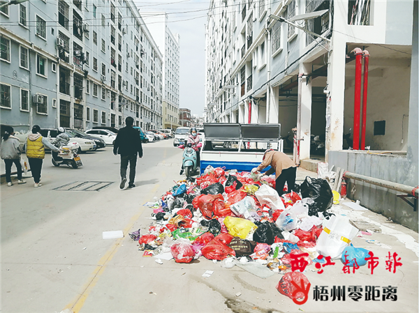 梧州零距離網(wǎng)-西江都市報訊(記者 黃燁玲)在龍圩區(qū)新塘沖廉租房小區(qū)內(nèi),一眼望去,樓房林立,在小區(qū)門口處,老人小孩坐在一起聊天曬太陽,儼然一幅和諧的冬日生活場景圖。然而,近段時間,有市民反映,新塘沖廉租房小區(qū)內(nèi)垃圾清理不及時的情況多次發(fā)生,垃圾斗車都裝滿了垃圾,卻遲遲未見環(huán)衛(wèi)工人運走,臭氣熏天,嚴重影響居民的生活環(huán)境。