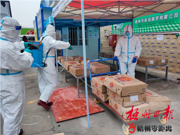 工作人員對貨物進行消毒殺菌。冼振宇 攝 據了解,該專倉是我市為進一步加強進口冷鏈食品監管工作,切實防范新冠肺炎疫情通過進口冷鏈食品傳播的風險,而設立的四個外埠入梧進口冷鏈食品集中監管專倉之一。 演練按照《梧州市進口冷鏈食品集中監管專倉運行細則》的相關規定進行,模擬有一批進口冷鏈食品進入我市銷售,按照相關要求,貨主需提前24小時向位于竹灣同舟物流批發市場的梧州市進口冷鏈食品桂揚集中監管專倉進行報備。接到消息的衛生防疫人員、消殺公司消毒員、專倉搬運工人穿戴全套防護服,在專倉外的消殺區域等候。貨物進入梧州境內不停留、不繞行,直接到達專倉停車點,專倉管理員向貨主查驗報關單、出入境檢驗檢疫證明、核酸檢測證明、消毒證明等“四證”。查驗手續齊全后,專倉搬運工人把冷藏車上的貨物卸運至消殺區域,消殺公司消毒員對貨物進行“六面”消毒噴淋。隨后,衛生防疫人員提取樣本進行核酸檢測。完成消毒的貨物封存好再運入專倉存儲,待核酸檢測結果顯示為陰性,該批貨物信息錄入“八桂冷鏈通”平臺后,專倉就可以對該批貨物開具出倉證明,并在每件貨物的外包裝上粘貼綠色放行標識。隨后,貨物可允許進入市場生產、加工、銷售。 市市場監管局食品經營科負責人表示,下一步,我市將加大對市場進口冷鏈食品的監督力度,確保每一批進口冷鏈食品在進入我市進行生產、加工、銷售前,必須通過集中監管專倉的查驗、二次消殺、核酸檢測,嚴防新冠肺炎疫情通過冷鏈食品傳播。 |