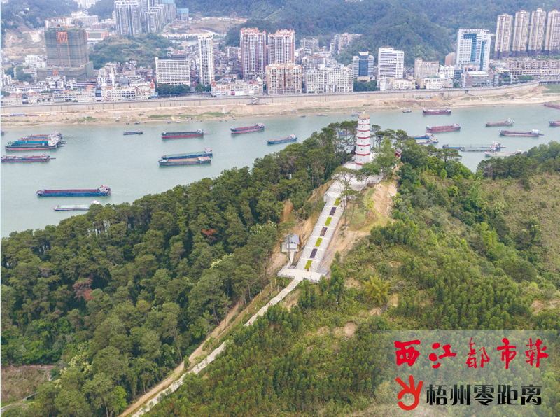 3月22日,登山道穿過茂密的山林連接允升塔。據了解,允升塔景區于春節期間試運營開放,期間每天接待游客約8000人次,成為西江江畔登高賞景的好去處。目前,允升塔景區的場地清理、綠化種植等收尾施工正在有序進行。記者 陳凡 攝