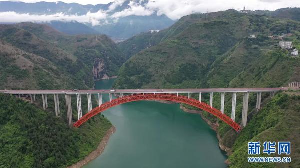 4月8日,G42滬蓉高速大寧河大橋與青山綠水白云相映成畫。新華網 向進 攝