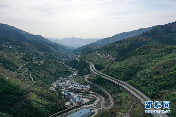4月8日,G42滬蓉高速三峽庫區段,寬闊的高速公路與不遠處的彎曲小路平行向前延伸。新華網 向進 攝