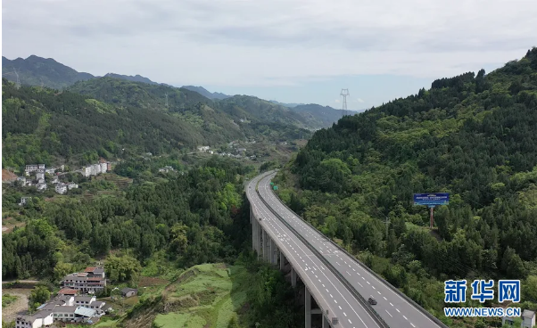 4月8日,G42滬蓉高速兩側綠樹成蔭,勾畫出一幅山清水秀氣象新的生態圖景。新華網 向進 攝