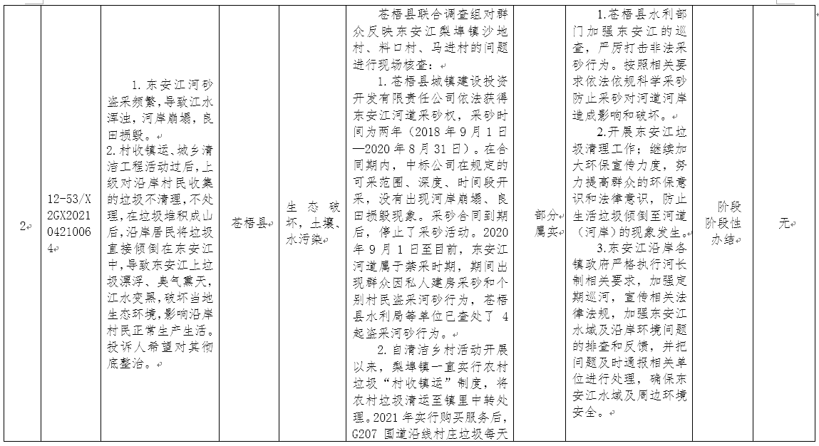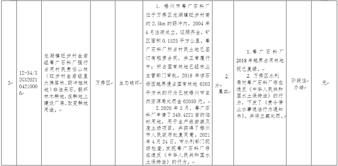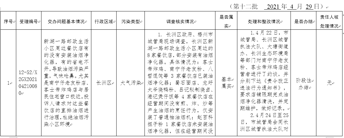4月22日,中央第七生態(tài)環(huán)境保護(hù)督察組向梧州市交辦第十二批群眾舉報(bào)案件共6件。梧州市委、市政府高度重視,第一時(shí)間明確責(zé)任承辦單位,并開展調(diào)查處理及整改工作。現(xiàn)將第十二批6件群眾舉報(bào)案件調(diào)查處理情況通報(bào)如下: