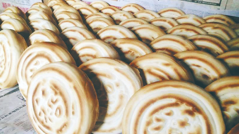白水鍋盔 鍋盔是陜西地區一種民間傳統風味小吃。陜西八大怪中,有一怪就是“鍋盔大得賽鍋蓋”。關中地區比較出名的有乾州鍋盔、涇陽鍋盔、岐山鍋盔等,這些鍋盔有的以大、厚著稱,有的以添加獨特佐料見長。陜西省渭南市白水縣的鍋盔以做工精細、內酥外脆、香醇味美等特點受到廣大食客喜愛。 白水鍋盔歷史悠久,制作工藝世代相傳。白水鍋盔的制作工藝考究獨特,與普通人家做的烙饃有很大不同。在白水當地,幾乎每個村里都有傳承祖輩遺業、精通鍋盔制作的手藝人,他們中最出名的是恒寨村的皇甫家族。 在白水,手藝人制作鍋盔,一是不用發酵粉,二是不用和面機,三是和的面用秤稱,四是爐膛無明火。手藝人精選當年新產上等面粉,汲地下井水,添入適量堿面,采用自制老酵頭發面,用手工揉面。面團揉好后分成若干小塊,用秤定量,一個九兩九,既保證鍋盔形狀完美統一,又體現公平公正。將定好量的面團搟成大如老碗口、厚約半寸的面餅。 面餅正面印上“福、祿、壽、禧”等字樣,寄托著人們祈求幸福生活的美好愿望。在烘烤環節中,烘烤手法的運用和火候的掌握既體現手藝人的工藝水平,也決定著每一個鍋盔的品質和味道。烘烤以土爐、焦炭、暗火為宜,先將面餅放在平底鏊上烙制,等饃餅正反兩面變黃之時,移入爐膛側壁開始烘烤。約十分鐘后,一股淡淡的麥香味彌漫開來,鍋盔便做好了。 剛出爐的鍋盔色黃味香、形狀精美,入口酥軟可口、麥香沁脾、筋道耐嚼。白水鍋盔的制作過程體現出一代代手藝人精湛的技藝,以及精益求精和追求卓越的工匠精神。 (西江都市報綜合) |