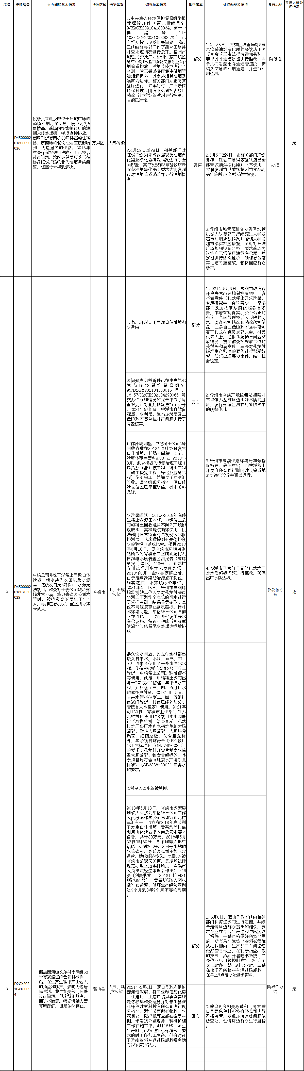 中央生態環境保護督察組交辦“回頭看”督察及第二輪督察回訪不滿意信訪件D450000201806090026、D450000201807030029、D2GX202104160094號辦理情況公示