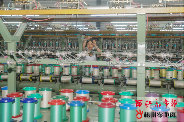 5月23日,蒙山縣五豐絲綢有限公司女工正在車間里開展絲綢作業(yè)。該公司今年搶抓機(jī)遇升級(jí)技術(shù),不斷完善配套體系,擴(kuò)產(chǎn)擴(kuò)容,新采購(gòu)12臺(tái)套劍桿織機(jī),預(yù)計(jì)年新增產(chǎn)綢緞70萬(wàn)米。梧州日?qǐng)?bào)記者 楊揚(yáng) 攝