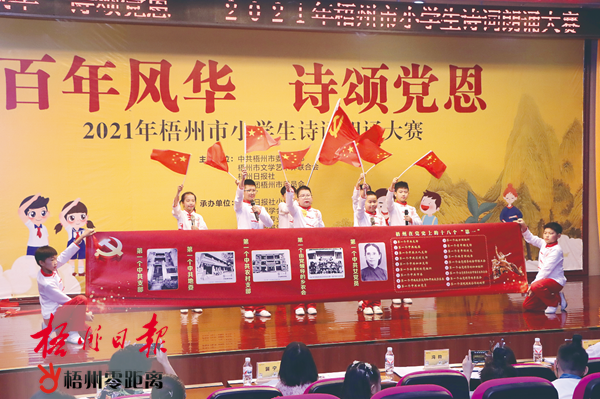 5月30日,2021年梧州市小學生詩詞朗誦大賽在市圖書館舉行復賽,選手們逐一上臺表演參賽節目。