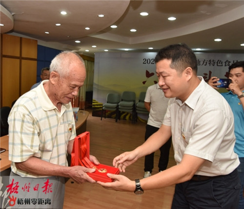 社長林敏華、總編輯肖苗生分別為獲得紀念章的梧州日報社老黨員頒發、佩戴“光榮在黨50年”紀念章。何鎏攝 為老黨員頒發“光榮在黨50年”紀念章,是中國共產黨成立100周年慶祝活動的重要組成部分,也是中國共產黨首次頒發此類紀念章。頒發對象為健在的,截至2021年7月1日黨齡達50周年的,一貫表現良好的黨員。根據黨中央、自治區黨委和梧州市委相關文件精神,經過報社黨委審查和復核,梧州日報社共有3名老黨員符合紀念章頒發條件,他們分別是譚伯輝、梁振偉、宋文芳,三人至今的黨齡分別達64年、56年、55年。 紀念章頒發儀式現場喜氣洋洋。儀式上,林敏華、肖苗生分別為來到現場的譚伯輝、宋文芳兩位老黨員頒發、佩戴“光榮在黨50年”紀念章,并向他們發放慰問品及慰問金,以此向老黨員致以崇高的敬意。梁振偉因外出,他的紀念章由其親屬代為轉交。