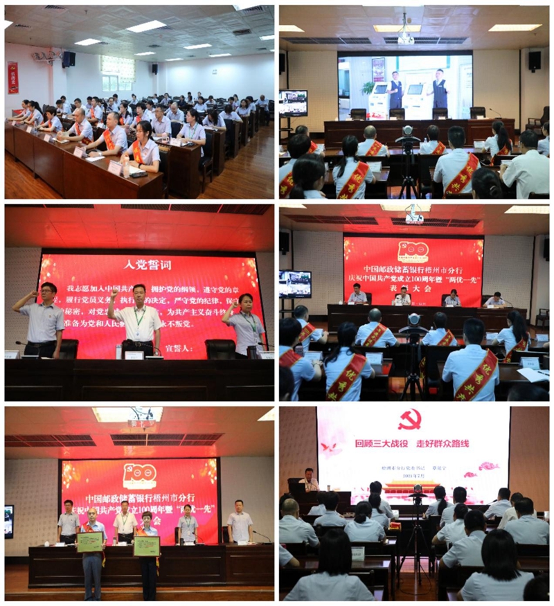 大會(huì)表彰了先進(jìn)基層黨組織和優(yōu)秀個(gè)人,并播放了“梧州市分行慶祝建黨100周年MV”,通過(guò)視頻形式展現(xiàn)梧州郵儲(chǔ)人的精神風(fēng)貌。會(huì)上,郵儲(chǔ)銀行梧州市分行全體黨員重溫入黨誓詞,郵儲(chǔ)銀行梧州市分行黨委書記覃延寧給全體黨員上了一節(jié)題為“回顧三大戰(zhàn)役,走好群眾路線”的“七一”專題黨課,生動(dòng)講述“三大戰(zhàn)役”以及中國(guó)共產(chǎn)黨走好群眾路線的寶貴經(jīng)驗(yàn)。 本次活動(dòng)旨在通過(guò)表彰大會(huì)和專題黨課,進(jìn)一步動(dòng)員全行各級(jí)黨組織和共產(chǎn)黨員奮力拼搏,增強(qiáng)黨員干部的愛(ài)黨愛(ài)國(guó)信念,進(jìn)一步激發(fā)基層黨組織活力。今后,郵儲(chǔ)銀行梧州市分行全體黨員將開拓創(chuàng)新、扎實(shí)工作,為分行健康發(fā)展注入活力,為梧州經(jīng)濟(jì)發(fā)展注入動(dòng)力。(廖坤文 秦海蘭)