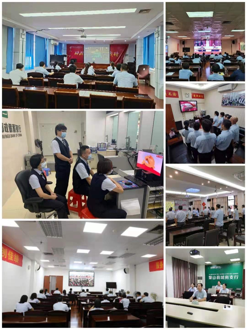 7月1日上午,慶祝中國共產黨成立100周年大會在北京天安門廣場隆重舉行。為共同見證建黨一百周年偉大時刻,郵儲銀行梧州市分行黨委組織全體黨員集中收看大會,轄區內各縣支行和營業網點自行組織收看。