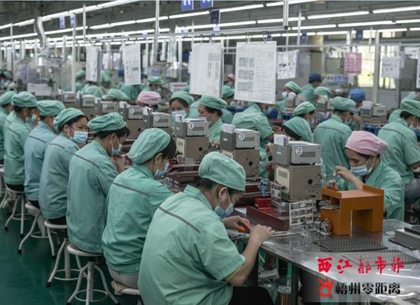 7月8日,工人們在廣西昭信平洲電子有限公司生產線上工作。廣西昭信平洲電子有限公司位于龍圩區工業園區,主要生產電感線圈、濾波器等電子產品。本年來除了穩步推進生產進度,還在原廠房周圍擴建二期建設項目,預計明年6月二期項目投產后產能將提升75%。梧州日報 記者 楊揚 攝