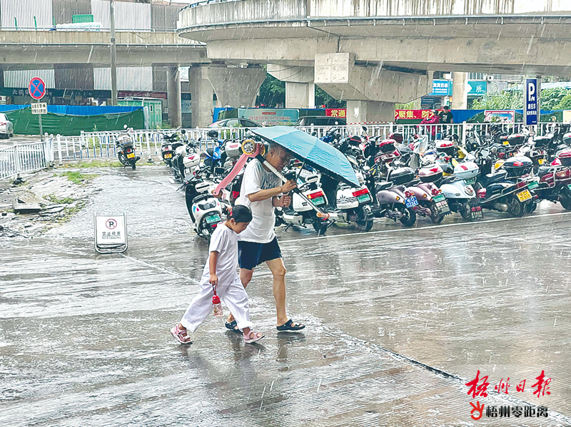 當(dāng)天下午,一場暴雨大大緩解了入伏以來的炎熱天氣。據(jù)氣象部門預(yù)測,未來兩天我市大部地區(qū)有中雨,局部有大雨到暴雨。梧州日?qǐng)?bào)記者 楊揚(yáng) 攝