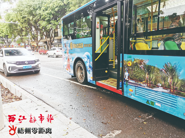 梧州零距離網-西江都市報訊(記者 謝韻 實習生 吳斌興)近日,有市民發現,富民三路梧州學院對面新設立的公交車站就在路邊的停車位上,高峰期路邊停放的私家車較多,影響了公交車停站,兩輪車也只能借道機動車道行駛,安全隱患較大。市民希望有關部門盡快對這個問題進行整改。