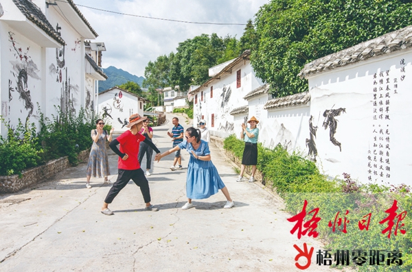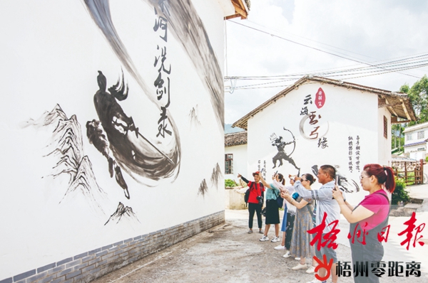 近日,游客在蒙山縣文圩鎮屯治村鄉村振興示范點游玩。近年來,該縣注重深挖鄉村歷史底蘊,按照“一村一品”打造多個鄉村振興示范點。屯治村是新派武俠小說開山鼻祖梁羽生的故鄉,該村把武俠元素融入鄉村環境打造中,在公共場所及民居墻面繪制數十幅梁羽生武俠小說里的人物形象,每年吸引大批縣內外游客前來觀光游玩。黃勝林 文并攝