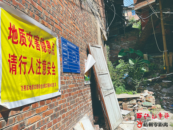梧州零距離網-西江都市報訊(記者 黃子萃)近日,有市民反映,萬秀區文瀾路步高里8-20號居民樓片區年久失修,圍墻有坍塌跡象,道路下為防空洞,存在地質災害隱患,盼有關部門能將此地納入拆遷或棚改維修計劃中。