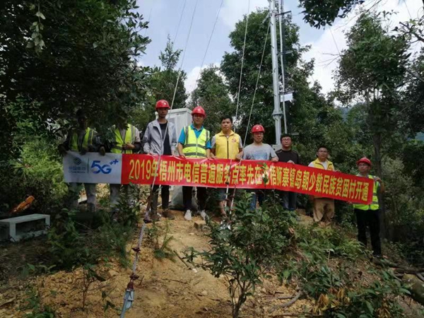 2019年電信普遍服務點率先在蒼梧獅寨鎮島朝少數民族貧困村開通。梧移 攝 “我們村目前正在大力發展杉木和八角等特色產業,現在手機信號也有了,希望在中國移動網絡的幫助下,特色優質產品可以開辟新的銷路、賣上好價錢,給村民們增加收入,爭取早日脫貧。”2020年9月,蒙山縣夏宜鄉六洛村率先開通中國移動基站并接入了移動家庭寬帶,村民給中國移動蒙山分公司送來一封感謝信和一面寫著“移動通信為人民,脫貧攻堅顯擔當”的錦旗,感謝移動公司為夏宜鄉六洛村的脫貧攻堅工作所作出的貢獻。