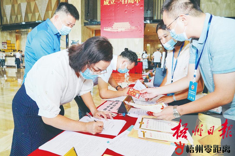 梧州零距離網(wǎng)-梧州日報訊 (記者 謝韻)政協(xié)第十三屆梧州市委員會第一次會議于9月26日至28日召開。9月25日,出席市政協(xié)十三屆一次會議的政協(xié)委員們帶著群眾的心聲和愿景,肩負著社會各界的期望和重托,陸續(xù)向大會報到。