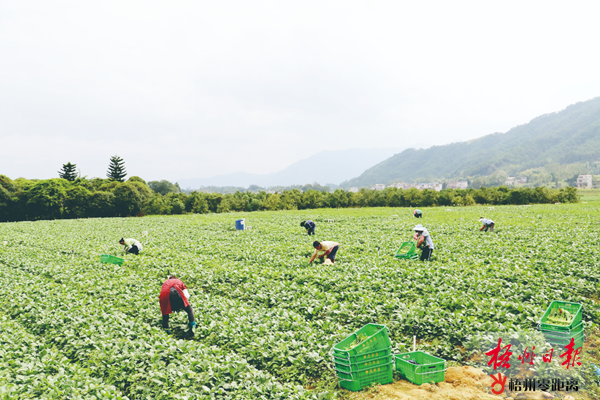 田間地頭一派繁忙的豐收景象。 鐘德獻 攝 10月13日早上,筆者在該基地看到,菜農們忙著采摘、分揀、裝筐、稱重、裝車,這些新鮮的蔬菜將通過專業的冷鏈物流,快捷地運送到粵港澳大灣區的各大超市,成為千里之外餐桌上的綠色安全食品。 “這是我們六夏基地收割的第一批菜心,現在每天預計有5至8萬斤蔬菜從這里發往廣東、香港等地。”蒙山縣澤元現代農業發展有限公司副總經理鄒千銘說,目前基地已種植蔬菜500畝,預計將增加種植到1600畝。此外,基地采用高效噴灌、精量播種等技術,通過輪作倒茬、循環供應的方式,每年可種植蔬菜四造,“每造菜心的畝產量可達1500至2000斤,畝產值約7000元”。 蒙山縣具有優異的農產品種植環境,出產的蔬菜口感很好。目前,該縣憑借突出的生態優勢、明顯的特色產業優勢、條件良好的交通,已逐漸發展成為國內重要的粵港澳大灣區蔬菜供應基地之一。為進一步做大做強蔬菜產業,該縣引進培育蒙山縣澤元現代農業發展有限公司、廣西宇遠農業發展有限公司等龍頭企業,以“企業+合作社+基地+農戶”的模式帶動農戶就業。此外,通過培育新型農業經營主體,創建現代特色農業示范區等方式進一步完善農業經營服務體系,推動全縣蔬菜產業高質量發展,助推鄉村振興。 近年來,蒙山縣聚焦現代農業高質量發展,強龍頭補鏈條聚集群。據統計,至2020年底,該縣已培育新型農業經營主體359家,建成各級現代特色農業示范區(園、點)113個,文圩鎮被列入國家農業產業強鎮建設名單。全縣糧食種植面積穩定在16.86萬畝,蔬菜種植面積達25萬畝,農村居民人均可支配收入達12550元,是“十二五”期末的1.71倍,年均增長9.6%。 (廖世娟 鐘德獻) |