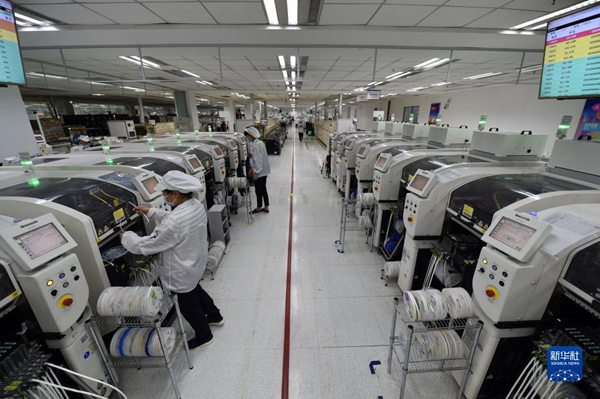 工人在位于安徽合肥的聯寶(合肥)電子科技有限公司生產車間內忙碌(2020年3月5日攝)。新華社記者周牧攝