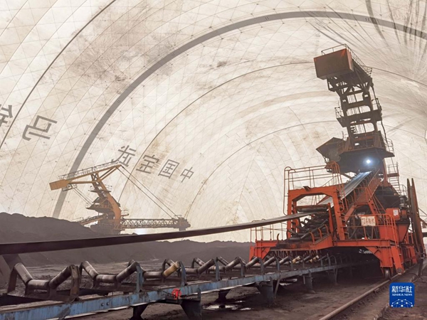 在位于安徽省馬鞍山市的中國寶武馬鋼集團熱電南區充氣膜全封閉煤場內,機械設備在作業(2020年12月29日攝)。新華社記者曹力攝