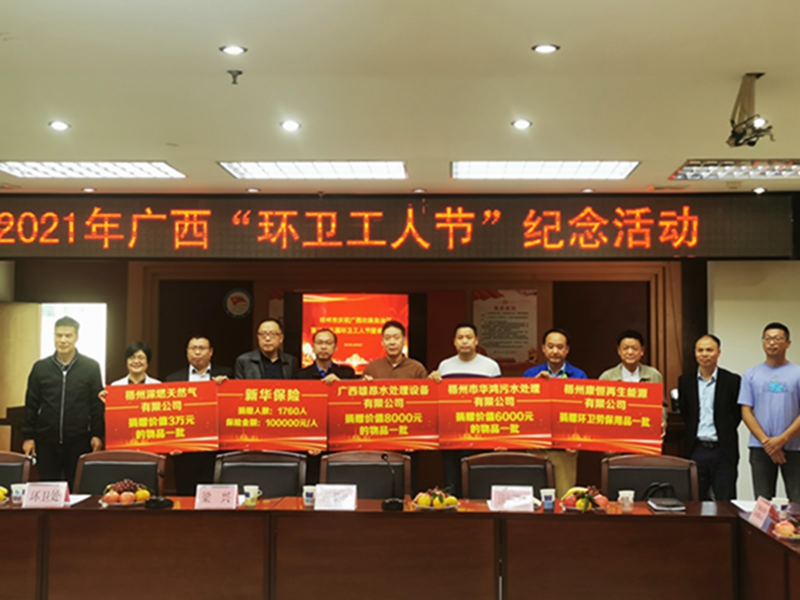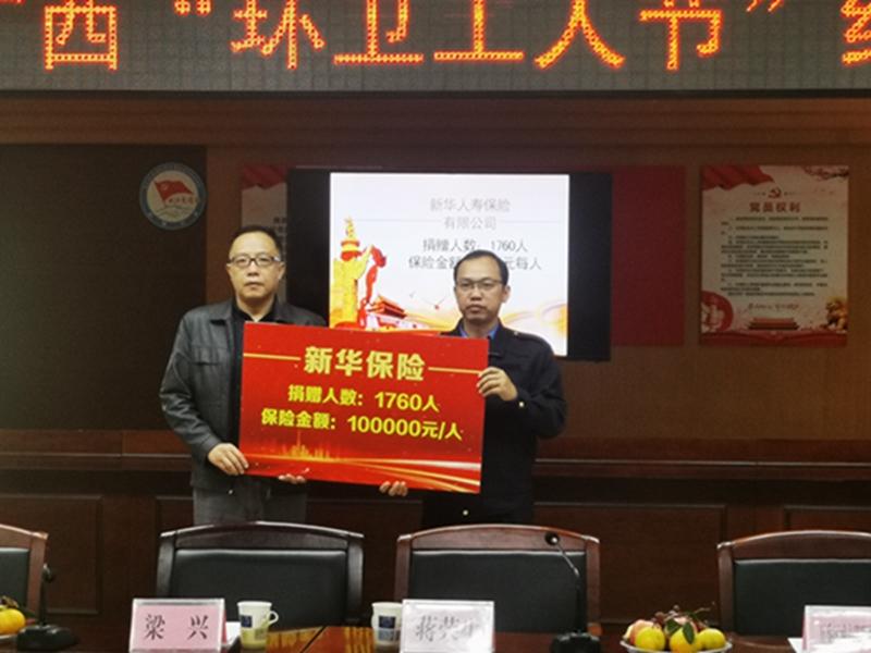 10月26日上午,在2021年廣西“環衛工人節”紀念活動中,新華人壽保險公益基金會向梧州市1760名環衛工人捐贈每人10萬元保額的意外傷害保險,保險金額總計1.76億元。