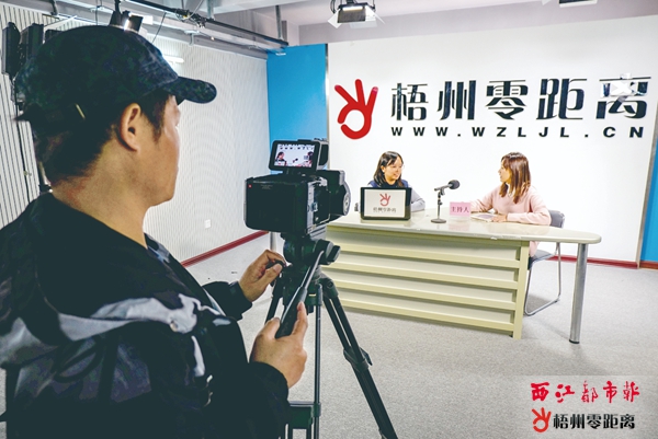 記者在梧州零距離直播間進行節(jié)目錄制。梧州日報 記者 何鎏 攝