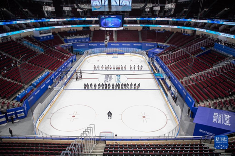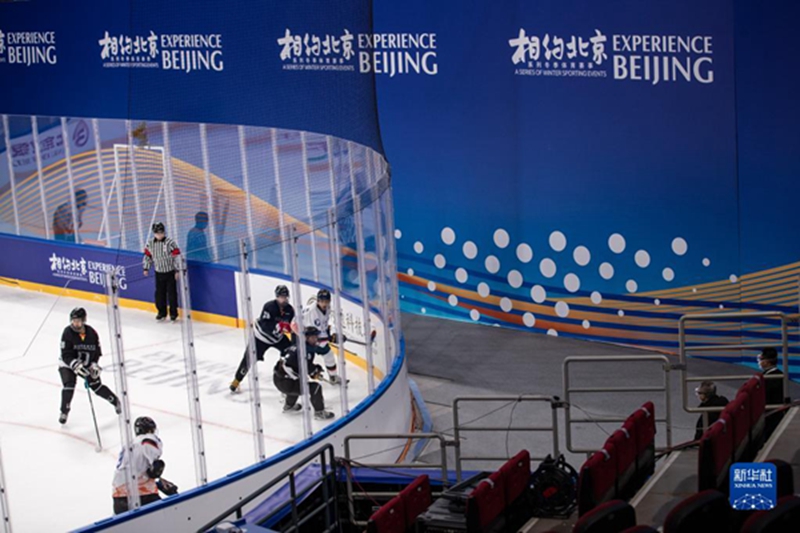 當日,“相約北京”冰球國內測試活動在北京五棵松中心進行第二個比賽日的比賽。