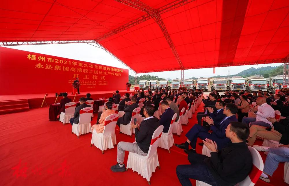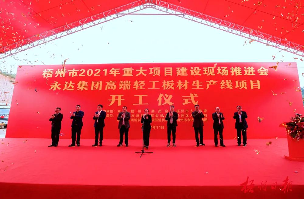 梧州零距離網(wǎng)-梧州日報訊(記者 姚藍婷)11月18日,我市2021年重大項目建設現(xiàn)場推進會活動之一的永達集團高端輕工板材生產(chǎn)線項目開工儀式在市不銹鋼制品產(chǎn)業(yè)園區(qū)舉行。這是我市貫徹落實自治區(qū)“沖刺四季度打好收官戰(zhàn)”的重要部署,是我市牢固樹立“項目為王”意識,大力實施工業(yè)強市、產(chǎn)業(yè)興市戰(zhàn)略的具體體現(xiàn),標志著我市重點項目建設又取得重大突破。