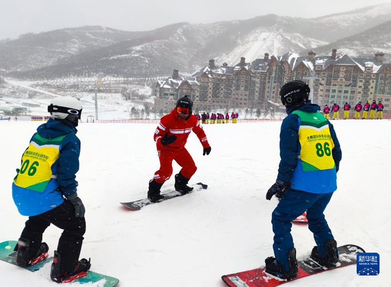 11月9日,任鑫在太舞滑雪場給學員授課(受訪者提供)。新華社發