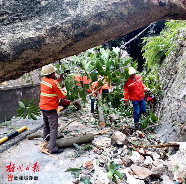 11月23日,綠化工人在地委大院內(nèi)處置倒伏的樹木。梧州日報 記者 吳艷虹 攝 經(jīng)確認,雖然該樹不屬于市園林綠化工程處管轄,但市園林綠化工程處以“我為群眾辦實事”為出發(fā)點,協(xié)調(diào)相關(guān)部門停水停電,組織隊伍開展緊急排險處理。搶險人員手拿高枝油鋸、手鋸等工具有序開展應急搶險工作,清除壓倒電線及阻礙交通的樹枝,及時排除險情。經(jīng)過3個小時的排險處理,樹木倒伏處交通已基本恢復暢通。 據(jù)統(tǒng)計,截至目前,市園林綠化工程處累計開展“我為群眾辦實事”實踐活動161次,用心用情切實解決好群眾“急難愁盼”問題,彰顯了梧州城市綠化管理工作新?lián)敗?/p> |