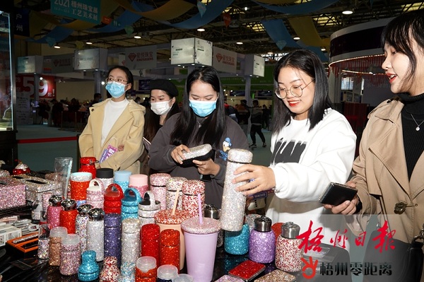 12月3日,來賓打卡由寶石制作的工藝品。記者 楊揚 攝