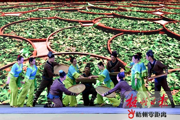 第三屆中國(廣西)六堡茶斗茶大會開幕式上,演員表演六堡茶題材的舞蹈。記者 何鎏 攝