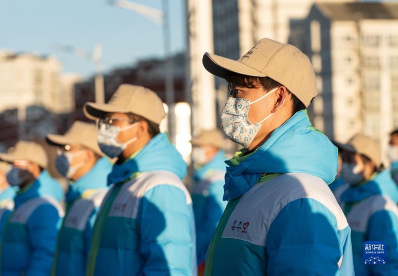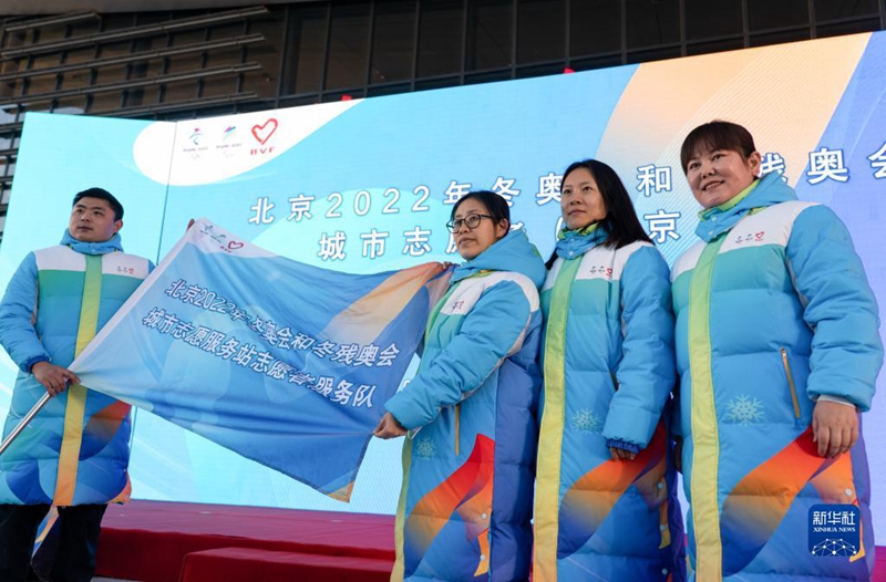 當日,北京2022年冬奧會和冬殘奧會城市志愿者(北京市)誓師大會在北京的京張高鐵清河站舉行,50余名城市志愿者代表參加了活動。新華社記者 陳鐘昊 攝
