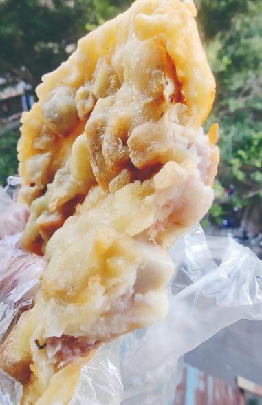 一塊炸芋頭餅能讓人回憶起童年。食俠文并攝 小時候,總有一些“媽見打”的零食。這些零食沒有精致的外表,有著直擊心靈的味道,但媽媽會覺得不健康,見你吃一次就打一次。 后來我們都長大了,于是也就沒人打得過我們了,但有些零食卻會慢慢消失在日常的視野中。如果你想尋覓小時候的味道,就要去小巷子里用心尋找。 位于大塘小學正門旁邊的蔬菜店里,有一個油炸攤。這個小攤就賣兩樣東西,炸薯餅和炸芋頭餅。別看這家店開在大塘小學門口,但老板坦言,來這里吃的大多是成年人。 對于80后90后的一代人,小時候愛吃的油炸餅成了美味的回憶。這個油炸小攤的很多食客都是鄰里街坊,他們看到了油炸餅,便勾起了他們的童年回憶。 李女士住在油炸小攤附近,送完孩子上學后,也順便買兩塊油炸餅。“小時候愛吃的零食,現在時不時會嘴饞,一周總會買一兩次回家吃。”李女士說,小時候的一塊炸薯餅、炸芋頭餅只有掌心大小,只要五毛錢,但那時候的五毛錢對一個學生來說也是奢侈的消費了,買了會心疼的。也正是這種莫名的心疼,會讓她對這些食物有著珍貴的感情。 把面粉調成純白漿糊狀,攪動面漿可以感受到細膩的感覺,再把已經蒸煮入味的芋頭鋪在面漿上,下到清澈的油鍋里,油炸兩三分鐘,香噴噴的芋頭炸餅就出爐了。 一口咬開,粉粉的芋頭像是散開了雪花,入口有著咸香味。再細品面餅的酥脆,“咔滋咔滋”的聲音迸發,耳邊仿佛響起媽媽說的“不健康”“不衛生”“對長身體不好”的話語。于是,我們一邊笑一邊吃,還是叛逆的感覺,少年的笑臉。 (食俠文并攝)