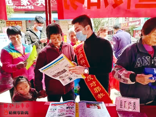 近日,蒼梧縣反邪教志愿者在石橋鎮(zhèn)開展反邪教宣傳教育活動。通過發(fā)放宣傳資料、現(xiàn)場講解等多種方式,增強了廣大群眾的法治意識和抵制邪教的能力。 (市委政法委供圖)