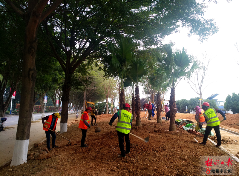 12月20日,在工人們正在西堤公園種植樹(shù)木。