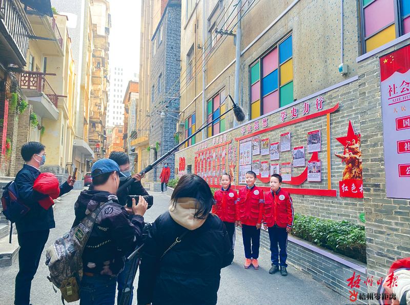 組圖說明:小記者到紅色教育基地拍攝錄制黨史宣傳視頻。 覃競儀 攝